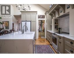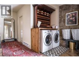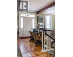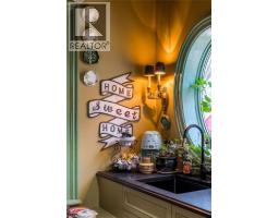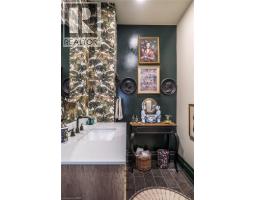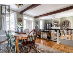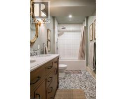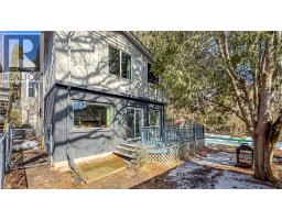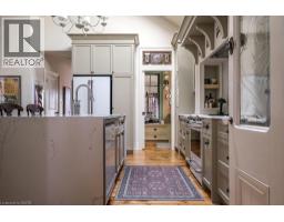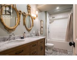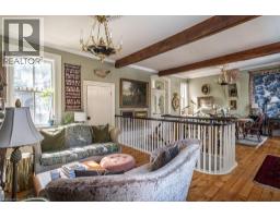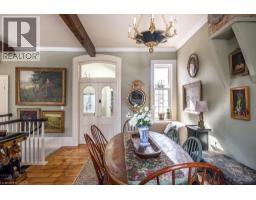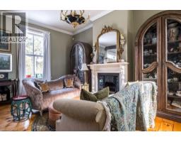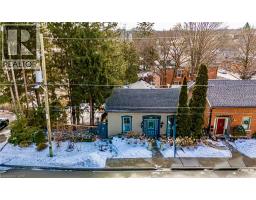Dundas Dream. This circa 1880 character cottage, located in the heart of the Cross-Melville heritage district, is walkable to everything. Storybook curb appeal with beautiful perennial landscaping is unassuming from street level with a two full stories in the rear. Private forest on a 72' double wide lot, featuring a sunken garden and inground, heated saltwater pool surrounded by lush ferns, hostas, peonies, rose buses, hydrangeas and Japanese grasses. This tardis of a home is much larger than it appears with over 2,500 sqft of finished living space. Professionally renovated to the studs in 2023 to reimage the layout and living space. New HVAC, wiring, footings, support beams - everything! Unique reverse bungalow layout with main level living and lower garden level bedrooms, all above grade. 4 beds and 4 baths (2 half). The primary has jack and jill 5-piece bath access and a large WIC. One bedroom has custom built-ins with a closet and desk. The remaining two bedrooms share a walk in closet in their own wing. Additional storage via a large custom hallway built-in featuring double closets and a bench with hooks. There's even secret storage under the newly constructed, heritage style, staircase. This home is not to be missed. Loads of charm and character from rustic pine plank floors, salvaged brick floors from the old Grafton building, antique mantel with ornate cast iron insert, beamed ceilings, matching regency chandeliers imported from Chicago, and so much more. Brand new kitchen with quartz countertops, 14ft vaulted ceilings, walk-in pantry with bar sink, and garden doors to a private, forested deck. Main-level family room has a gas line ready fireplace and access to a beautiful 5-piece bath with full glass shower and standalone tub. Separate area for future built-ins. Could easily be converted to a second/alt primary. (id:47351)