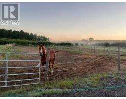 Experience the ultimate in country living with this stunning 2022 slab-on-grade home, perfectly situated on over 43 scenic acres. Designed with a seamless blend of modern comfort and rustic charm, this 2,200 square foot residence showcases an open-concept layout, high-end finishes, and inviting warmth throughout. The home features three spacious bedrooms, two beautifully appointed bathrooms, and a cozy wood stove that adds to its welcoming ambiance. Step outside and take in all that this remarkable property has to offer including a brand-new 3-stall horse barn complete with a heated tack room, two chicken coops with enclosed runs, and a tranquil pond stocked with fish. Whether you're an avid outdoorsman or simply seeking peace and privacy, you'll appreciate the hunting opportunities at the back of the property, where a dedicated blind awaits. The expansive master suite offers a true retreat, featuring a walk-in closet and a spa-like ensuite with a luxurious soaker tub and stand-up shower. This is rural luxury at its finest where every detail is designed for comfort, function, and the beauty of country life. (id:47351)