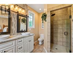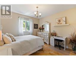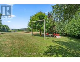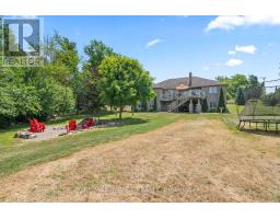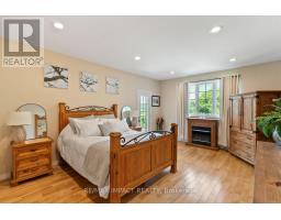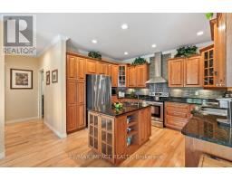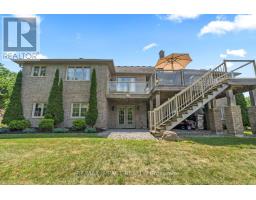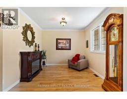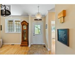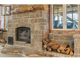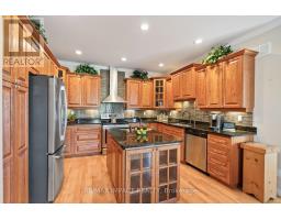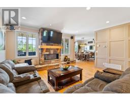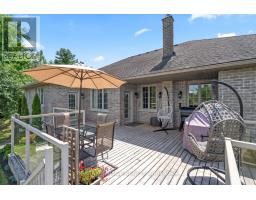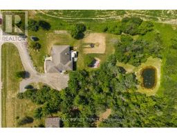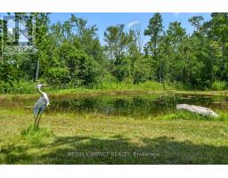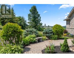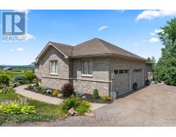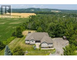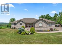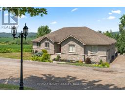 Impressive custom brick/stone bungalow, boasting over 2500 sf of luxurious living space on the main level plus full WALKOUT basement and attached heated 3-car garage with 2 overhead doors. Nestled on an expansive 1.74 ACRES, this home offers a serene lifestyle with panoramic views overlooking farmlands and the Cavan Hills, complete with a spring-fed POND, ranging from 10-14 ft deep. As you enter the front foyer, there is a convenient den plus the grandeur of a spacious great room, accentuated by a striking stone fireplace and a unique waffle-patterned feature wall. Gleaming hardwood floors flow throughout the home with an abundance of crown mouldings and pot lights. The chef's kitchen is a culinary delight, equipped with stainless steel appliances, a granite countertop, ceramic backsplash, and an island with a veggie sink. The adjacent large dining area opens onto a generous deck, designed with tempered regal glass for unobstructed views of the backyard and fire pit area, ideal for entertaining friends and family. The main floor features 4 well-appointed bedrooms, including a primary suite that includes a walkout to the deck, a luxurious 5-pc ensuite with dual sinks, a separate shower and a whirlpool tub, all complemented by a stylish barn door privacy feature. The primary suite also boasts a walk-in closet with built-in shelving for optimal organization. Two of the additional bedrooms share a convenient Jack and Jill bathroom, while a third bedroom is situated near the 2-pc powder room. The walkout basement includes large above-grade windows that flood the space with natural light, a cozy family room complete with an electric infinity fireplace and a dry bar, 3-pc washroom and a huge open area with extra plumbing rough-ins, perfect for customization. The basement also features ample storage, making it an excellent option for a multi-generational living arrangement with its separate entrances and walkout basement. (id:47351)