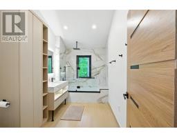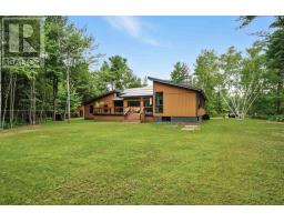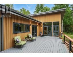 Experience cutting-edge design and premium craftsmanship in this stunning 1 year-old, 2307 ft2 modern bungalow, set on a 1.4 acre private lot in one of the newest and prestigious east end subdivisions. The exterior exudes a sleek style with composite stone and fluted composite siding, a metal roof and a robust ICF foundation. A 2 car attached garage and 1.5 car detached garage provide ample storage space complemented by a circular driveway. Inside, the home is an architectural masterpiece with 19-foot cathedral ceilings, porcelain tile flooring and oversized windows that flood the space with natural light. Every detail reflects the home's highend design - solid wood, metal and glass doors throughout and quartz countertops in the kitchen and all bathrooms, paired with tile accents in the showers for a refined touch. The kitchen boasts top-of-the-line Samsung Bespoke Series appliances and stylish cabinetry. The master suite is complete with a luxurious ensuite bath, walk-in closet and direct access to the rear deck. Two additional bedrooms, a 4 piece main bath, laundry room and a 2 piece powder room for guests complete the main floor space. The basement has impressive 9' ceilings a 40' x 23.5' recroom with a kitchenette, 2 additional bedrooms and a well appointed 3 piece bath with a sauna. Gas forced air heat & central air systems keep you comfortable year round. The backyard provides exceptional privacy, surrounded by mature trees and fencing on one side. The spacious back deck is constructed with composite boards and metal railings with unobstructed views. As a special bonus, this home includes deeded access to a private boat launch on St. Mary's River. Don't miss the opportunity to own this remarkable property! (id:47351)
