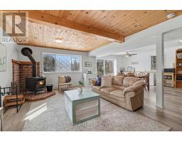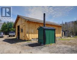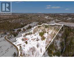 Welcome to 4237 Bell Line Road, a country lover's dream and the perfect setting for those seeking a peaceful, SELF-SUFFICIENT lifestyle with HOBBY FARM potential. Ideally located on a QUIET ROAD yet only 5 minutes from Highway 7, this beautiful property offers the best of rural living with convenient access to nearby amenities. Set on 13.6 ACRES of rolling hills and mature forest, the property features stunning rock outcroppings, a private pond, and a GENTLE CREEK flowing alongside the land. The home offers 2400+ sq ft living space on two levels, 4 BEDROOMS and 2 FULL BATHROOMS, second level laundry room with deck access, plus a HUGE 2ND FLOOR DEN used as an office and recreation space. The bright, OPEN MAIN FLOOR features a welcoming country kitchen, dining area with yard access, and a cozy living room with wood stove. A full bathroom and utility room/basement complete the main level. Many areas of the home have been freshly painted with new flooring installed on stairs and den as well as in the laundry room. The home can be heated with an exterior WOOD FURNACE, with wood easily harvested from the property; while an additional PROPANE FURNACE was installed in 2026. With currently only electricity connected to municipal services, this property could go completely OFF-GRID if solar panels are installed. Outside you'll find a OVERSIZED GARAGE, utility shed, a two storey cow/feed BARN, and not one but two CHICKEN COOPS. SCHOOL BUS SERVICE stops right at the driveway, and the road is prioritized for winter maintenance as part of the bus route. Located just 15 MINUTES FROM SHARBOT LAKE, where you'll find grocery, pharmacy, bank, marina, restaurants, brewery, LCBO, schools, parks, and a beautiful public beach. If you are looking for space, privacy, and a connection to nature without sacrificing convenience, 4237 Bell Line Road offers a rare opportunity to enjoy the very best of country living. (id:47351)