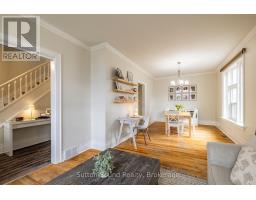 Step into the charm of this solid brick century home, offering character, updates, and a fantastic location. With 3 bedrooms, 1 bathroom, and approximately 1460 sq ft of living space, this home blends classic features with modern improvements. Inside, you'll find an open concept living and dining area showcasing original etched glass and hardwood floors, adding warmth and timeless appeal. The updated kitchen and bathroom make this home move-in ready, while the finished third-floor attic provides two additional bonus rooms-perfect for a playroom, home office, guest space, or hobby area. Major updates offer peace of mind, including a roof re-shingled in 2021, natural gas furnace and central air (2018), and Vandolders windows and exterior doors. Efficiency has also been improved with added attic insulation and a spray-foamed basement with fire-retardant paint. Step outside to a large deck overlooking an extra-deep 200-ft lot, offering plenty of space for kids, pets, or gardening, plus ample parking for up to four vehicles. Located in a great family-friendly neighbourhood, you're just a short walk to Harrison Park and the Mill Dam, making it easy to enjoy some of Owen Sound's most loved outdoor spaces. An excellent opportunity for a turnkey family home that combines historic character, thoughtful updates, and a fantastic location. (id:47351)