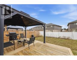 Welcome to this beautifully maintained 2020-built bungalow in a quiet, newer area of Tillsonburg and still under Tarion warranty. Offering 3+2 bedrooms and 3 full bathrooms, this home delivers the perfect blend of modern design, functionality, and low-maintenance living. Step inside to an inviting open-concept layout featuring 9-foot ceilings and a stunning cathedral-style living room filled with natural light. The kitchen is thoughtfully designed with stylish finishes, ample cabinetry, and a large island-ideal for everyday living and entertaining. The spacious living area is anchored by a cozy gas fireplace, creating a warm and welcoming atmosphere. The primary suite offers a private retreat complete with a walk-in closet and ensuite bath. Downstairs, the fully finished basement expands your living space with two additional bedrooms, a full bathroom, and plenty of storage, perfect for guests, family, or a home office setup. Outside, enjoy a fully usable backyard featuring a deck with gazebo and a storage shed-ideal for relaxing or hosting. The double car garage adds convenience. Located on a peaceful, low-traffic street, this home is a short distance to shopping, coffee shops, trails, and everyday amenities, making it a great option for downsizers or families alike. (id:47351)