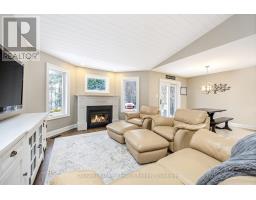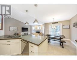 Welcome to Newman Place, a quiet cul-de-sac just minutes from downtown Georgetown, offering a stunning detached bungalow set on a private ravine lot with an inground pool. A landscaped front yard and stone walkway lead to a bright, inviting foyer highlighted by soaring ceilings, an arched transom window, and full-height sidelights. The main level features hardwood flooring throughout and a seamless open-concept layout ideal for both everyday living and entertaining. The living and dining areas are accented by crown moulding, expansive windows, and a striking feature wall with an electric fireplace. The kitchen showcases white shaker-style cabinetry, quartz countertops, tile backsplash, a centre island with breakfast bar seating, and stainless steel appliances. The adjoining breakfast area offers a walkout to a private composite deck with gas BBQ hookup and spiral staircase to pool area. Open to the kitchen, the family room impresses with vaulted shiplap ceilings, a gas fireplace, & large windows overlooking the ravine. The primary bedroom retreat features hardwood flooring, a walk-in closet with built-in shelving, a gas fireplace, and a spa-inspired five-piece ensuite complete with soaker tub, glass-enclosed shower, and double vanity. Two additional bedrooms, a four-piece family bathroom, and a convenient laundry room with garage access complete the main level. The finished lower-level walkout is designed for entertaining, featuring a movie room, office area, and a spacious recreation room with wet bar and gas fireplace. Two additional bedrooms & a four-piece bathroom provide excellent space for teens, guests, or in-law potential. Step outside to enjoy the private backyard oasis, perfect for hot summer days, complete with an interlocking stone patio, heated inground saltwater pool with waterfall, cabana, and the private ravine setting. All this close to Downtown, Farmer's Market & Park Public School with easy access to commuter routes. Don't miss out on this one! (id:47351)