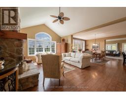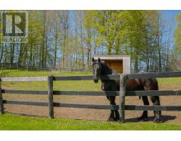 Perched atop 40 stunning acres in a prime location this custom-built equestrian residence commands panoramic vistas of the rolling Northumberland Hills from every window. Inside, discover grand principal rooms thoughtfully designed for effortless single-level living and sophisticated entertaining. The great room features vaulted ceilings, anchored by a magnificent stone fireplace. The gourmet kitchen flows seamlessly into a spacious family dining area. Retreat to the generous main-floor primary suite, complete with a walk-in closet, ensuite, and a private balcony perfect for capturing the sunrise. A welcoming den with a fireplace and a sun-drenched sunroom completes the main floor. The beautifully finished lower level provides ample space for family and guests including a home gym. A charming 4-bed bunkie offers additional versatile space. Multiple walkouts lead to landscaped perennial gardens and the estate's natural beauty. Explore private woodland trails to enjoy or simply immerse yourself in the peaceful ambiance of open pastures. For the equestrian enthusiast, the property features impressive facilities, including a modern 8-stall barn with tack, feed, and storage rooms that open into a bright, 6000 sq ft indoor riding arena. The picturesque lower acreage encompasses 7 paddocks and a bass-filled pond. This is not just a home; it's an invitation to embrace a legacy lifestyle. (id:47351)