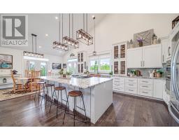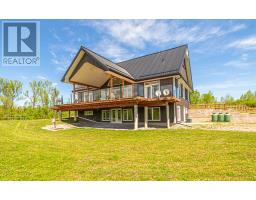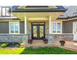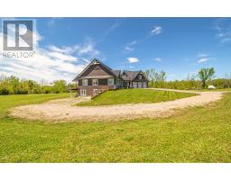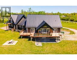 This beautiful 3-bedroom, 3-bathroom custom-built home is set on a private 7.4-acre lot and offers exceptional space and craftsmanship throughout. Featuring 9-ft ceilings and 8-ft glass doors, the home is finished with 8-inch engineered hardwood flooring. The spacious living room boasts 16-ft cathedral ceilings, pot lights, ceiling fans, and 7-ft windows that flood the space with natural light and provide a seamless walkout to an approx. 800 sq ft deck with custom aluminum frameless glass railing perfect for alfresco dining and entertaining. Enjoy five walkouts to the main deck, ideal for seamless indoor-outdoor living. The gourmet kitchen is a showstopper, featuring maple cabinetry with solid oak doors, a distressed leather granite countertop, and a massive 5x10 center island. The primary bedroom includes a walk-in closet, walkout to the deck, and an opulent 5-piece ensuite. The 2,525 sq. ft. basement offers three additional walkouts and endless potential. Additional highlights include upper and lower garages, perfect for vehicles, tools, or extra storage. Located just 10-15 minutes from shops, a bakery, pharmacy, and restaurants, with easy access to parks, a library, medical services, and only a 5-minute walk to year-round recreation on Lake Scugog, including a nearby boat launch for convenient lake access. (id:47351)
