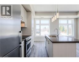 Welcome to this spacious and bright ground floor, corner condo in the award winning Jazz building. Branthaven built, this 2 bedroom + den, 2bathroom, 980sqft condo features 10 foot ceilings, carpet free and 2 balconies including one oversized that can accommodate a full outdoor living space. Brand new flooring throughout, freshly painted including trim and doors, stainless steel appliances, quartz counters, new bathroom vanity, ensuite laundry and upgraded laundry. The Jazz condos offer residents great communal spaces, including bright gym, party room, outdoor BBQ area, bike storage and ample visitor parking. An underground parking space and locker are both included. The location is convenient for commuters, close to highways, GO station, schools, Mapleview Mall and more. (id:47351)