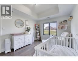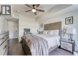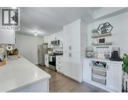 Welcome to effortless living in this beautifully designed, barrier-free 2-bedroom, 2-bathroom ground-floor suite, nestled in a quiet, well-maintained concrete building, with secure entry, that offers both peace of mind and long-term durability. Step inside to discover a spacious, open-concept kitchen featuring sleek quartz countertops, premium soft-close cabinetry, and stainless steel appliances. Enhance your morning routine with the bonus built-in coffee bar. The primary bedroom is a private retreat, complete with a walk-in closet and a bright ensuite bathroom boasting a fully tiled shower and extra built-in storage -ideal for keeping everything neat and organized. Both bathrooms are thoughtfully designed with accessibility and style in mind. Enjoy hardwood flooring throughout the main living areas, with tile in the bathrooms and in-suite laundry room—blending durability with modern design. Every inch of this home has been crafted for comfort, accessibility, and easy living. Bonus: secure storage space on 1st floor. Located in a desirable, walkable neighborhood, you're just minutes from St. Clair College, and the newly developing Shoppes at Heritage. Commuting is a breeze with quick access to Hwy 401, Hwy 3, and the Expressway. Whether you're a first-time buyer, downsizing, investing, or simply looking for a stylish, accessible home with zero compromise—this suite checks every box. (id:47351)
