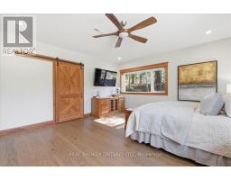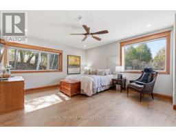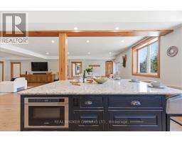 Set on over 5.5 acres of fully fenced, treed land just south of Guelph in Puslinch Township, this upgraded bungalow offers over 3,400 sq ft of finished living space designed for both everyday living and entertaining. Hand-scraped hickory hardwood flooring runs throughout, offering a durable surface that holds up well to daily use, including pets, while large windows and clean sightlines create a bright and functional layout. The kitchen is centred around a large island with seating, surrounded by custom cherry wood floor-to-ceiling cabinetry, stone countertops, and stainless steel appliances, and connects directly to the dining and living areas. The home features 4 bedrooms, including a spacious primary bedroom with views of the surrounding trees. Multiple living areas provide flexibility for family use, entertaining, or work-from-home needs. A separate wing offers a large open rec space with direct access to the outdoors, ideal for a games area, media room, or multi-generational living. A large stone patio with hot tub and covered structure creates a space designed to relax or entertain, while the acreage provides room for a wide range of uses. Zoned Agricultural, allowing for hobby farming, additional outbuildings, or home-based and farm-related uses, subject to township regulations. A large heated two-car garage, paired with a separate 1,269 sq ft steel workshop measuring approximately 30 ft x 44 ft. Located just south of Guelph, minutes to everyday amenities in the city's south end, with convenient access to Highway 401, offering the balance of rural space without giving up convenience. (id:47351)
