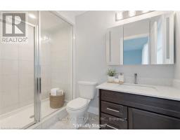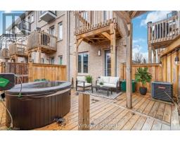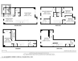 Welcome to 46 Borers Creek Circle in the heart of Waterdown - a beautifully updated residential condo townhouse located in one of the area's most desirable communities. Surrounded by parks, schools, shopping, dining, and with easy access to major highways, this home offers both everyday convenience and long-term value. The interior has been thoughtfully renovated, featuring engineered flooring, taller baseboards, and upgraded LED dimmable lighting throughout, creating a clean and modern aesthetic. The kitchen and bathrooms are finished with sleek quartz surfaces, complemented by smart, dimmable switches for both style and functionality. The upper level offers well-proportioned bedrooms, a luxurious ensuite with heated floors, lighted cabinetry in all bathrooms, and heated towel racks that provide a spa-like feel. Upstairs laundry adds everyday convenience. The fully finished basement expands the living space and includes a 3-piece washroom with ceramic tile flooring, heated floors, electric towel warmer, baseboard heater, as well as a pantry and additional storage. A rare feature for a townhouse, the home also offers a cedar deck, ideal for outdoor relaxation and entertaining. Additional highlights include a whole-house water filtration system and a finished, heated garage complete with epoxy flooring and ceiling storage racking, offering both functionality and durability. The property is being sold "AS IS, WHERE IS", with no representations or warranties made by the Seller. (id:47351)