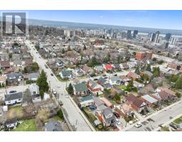 Charming 1.5-storey home in a well-established Hamilton neighbourhood, offering character, thoughtful updates, and a beautifully landscaped setting. Built in the post-war era, this home features a spacious layout with large upper-level bedrooms and a bathroom with a soaker tub and side window. The main floor offers a generous bedroom with walk-in closet, a modernized bathroom with accessible shower, and a spacious eat-in kitchen with ample cabinetry and functional storage.Enjoy outdoor living from the rebuilt front porch with composite decking, perfect for morning coffee overlooking the front garden. The private backyard is a true retreat with perennial gardens, mature trees, a composite back deck, lower cement patio with cabana, and space to relax or entertain. The basement has been waterproofed, insulated, and drywalled, and offers a large unfinished area with great future potential. A separate side entrance adds flexibility.Additional updates include 200-amp service, mostly updated wiring, roof replaced in 2016, windows replaced between 2014 and 2024, and new wood fencing in 2024. Rain barrels, a French drain, and thoughtful landscaping further enhance the outdoor space.Located just steps to city bus routes, close to GO Transit, and near Sam Lawrence Park, Escarpment trails, Bruce Trail access, schools, parks, recreation, and the vibrant Concession Street district. A wonderful opportunity to enjoy comfortable living in a scenic and connected Hamilton location. (id:47351)