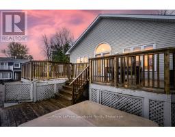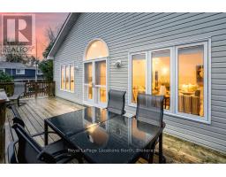 Welcome to a true Georgian Bay waterfront retreat, where unobstructed water views deliver unforgettable sunrises, sunsets, and year-round scenery. Built in 2002, this 4-bedroom, 3-bathroom bungalow was intentionally designed to maximize panoramic bay and Blue Mountain views from the main living areas. Perfectly positioned between Collingwood and Wasaga Beach, the location offers peaceful waterfront living with quick access to skiing, trails, dining, shopping, and four-season recreation.The covered front porch sets the tone - ideal for morning coffee or watching summer storms roll across the bay. Inside, the open-concept main floor is filled with natural light, vaulted ceilings, and a cozy gas fireplace anchoring the living space. The spacious kitchen offers generous counter space and storage, making it ideal for entertaining family and guests while enjoying water views.The main-floor primary suite provides a private retreat with a 4-piece ensuite, including a soaking tub, glass shower, and walk-in closet. The lower level features two additional bedrooms and a large rec room, creating flexibility for family living, guests, or cottage use.Outdoors, enjoy tiered decks, mature landscaping, and direct private waterfront access-perfect for swimming, kayaking, paddle boarding, or relaxing by the water. Whether used as a full-time residence or waterfront cottage, this home captures the essence of the Georgian Bay lifestyle: tranquil, active, and deeply connected to nature, with winter skiing and summer water sports at your doorstep. (id:47351)