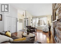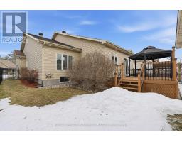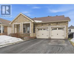 Welcome to this charming bungalow in Clarence-Rockland, featuring a beautiful stone façade and a bright, open-concept layout. The main floor offers soaring cathedral ceilings and a spacious living and dining area highlighted by a stunning gas stone fireplace that creates a warm and inviting focal point as you enter the home. The kitchen features birch cabinetry with decorative moldings and valance lighting, providing both style and functionality, with a cozy eating area and access to the backyard. The primary bedroom includes a walk-in closet and a private 3-piece ensuite, while the second bedroom is perfect for guests or a home office and is conveniently located near the main 4-piece bathroom. An elegant oak staircase leads to the unfinished basement with a rough-in for a third bathroom, offering excellent potential for future living space. The double gas-heated garage is equipped with insulated garage doors, hot and cold water access, and a floor drain. Outside, enjoy the fully fenced yard with a deck, gazebo, and storage shed, perfect for relaxing or entertaining. (id:47351)