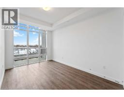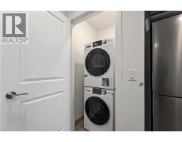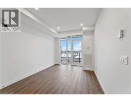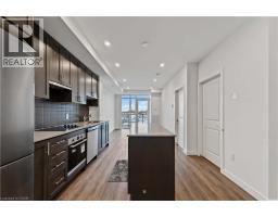 Move in ready 1 bedroom plus den located on the 4th floor offering 633 interior sq/ft with a West facing enhanced balcony (83 sq/ft) features in-suite laundry with stacking kit, brand new appliances, sleek pot lights, 9ft ceilings, floor to ceiling windows, quartz countertops, extended kitchen cabinet uppers, luxury vinyl plank flooring throughout and window treatments. Enjoy the added convenience of 1 underground parking space and 1 locker included! Smart Building with Smart Suite includes integrated lighting, heating/cooling control, security control, digital door lock, automated parcel locker, in-suite voice and touch enabled digital wall pad. Enjoy convenient living just minutes from the new GO Station, Confederation Park, Van Wagner's Beach, scenic lakeview trails, shopping, restaurants, and convenient highway access. Residents will have access to ground floor commercial space as well as resident amenities, including a stunning 6th-floor lakeview terrace with BBQ(s) and seating areas, studio space, media lounge club room with chef's kitchen, art gallery and pet spa. The smart home features include app-based climate control, security, energy tracking and digital access. (id:47351)