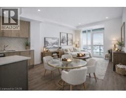 Newly built 633 square foot condo offering 1 bedroom plus den and an open concept kitchen with Stainless Steel appliances, solid surface countertops, beautiful subway style backsplash and breakfast bar combined with a dining area and living room all with vinyl flooring flowing onto 38 square foot balcony with Lake and Escarpment views. Large sunlit bedroom, 4-piece bathroom, flexible den space and in-suite laundry complete this beautiful condo. One assigned parking space, locker and as per DeSantis Muse offers a Media/Co-Working Lounge, Community Garden, Party Lounge and Sun Terrace. (id:47351)