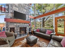Welcome to "Serenity," an architect-designed, turn-key, four-season retreat on the crystal waters of Otter Lake. This extraordinary property rests on an 11.93-acre point with 1,771 ft of natural shoreline, offering unmatched privacy, breathtaking views, & a deep connection to Muskoka's rugged beauty, all just 10 mins from Huntsville's amenities. Approach via a winding granite lane that opens to the entrance courtyard, where the home's sweeping rooflines, hand-cut granite, & walls of glass reveal glimpses of the lake & Serenity Bay. Inside, the soaring 25-ft great room makes a dramatic impression with floor-to-ceiling windows, a granite Rumford fireplace, & a wall of glass that opens to the lakeside terrace. The open-concept chef's kitchen, dining room, & great room are designed for effortless entertaining. The kitchen showcases a 12-ft Brazilian granite island, gas cooktop, & stainless steel appliances. Host unforgettable dinners surrounded by nature, with sliding doors that extend the living space to a covered terrace, perfect for lakeside dining, sunrise coffee, or fireside evenings under the stars. A separate family room provides a cozy retreat, ideal for games, TV, or curling up with a book, with sliding doors that invite the outdoors in year-round. The primary wing is a private sanctuary featuring a Scandinavian wood stove, walk-through closet, motorized blinds, & a spa-like ensuite with pebble wall & rain shower. Two additional lake-view bedrooms & a stylish 4-pc bath complete the west wing. Upstairs, a loft offers a fourth bedroom with an ensuite, overlooks the great room with sweeping lake views, & includes space for ping-pong or yoga. A cedar path leads to the shoreline, offering multiple seating areas, a steel fire pit set on the rock, a dock for swimming, diving, or tranquil paddles. Hear the call of the loon as it drifts across mirror-like waters, capturing the essence of a true Muskoka escape on this motor-free lake. (id:47351)