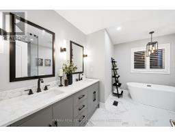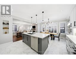 Move-in ready, beautifully styled 4+1 bed 3.5 bath home nestled on a quiet street in family-friendly Alton community. Exceptional curb appeal greets you with a stone exterior, refreshed landscaping, upgraded front door & garage doors (2025), and double garage. Inside, the home has been thoughtfully renovated and impeccably maintained. Main level showcases hardwood flooring, 9' ceilings, potlights, upgraded light fixtures, shutters, elegant panel moulding, wainscoting, crown moulding and trim throughout. The inviting family room is anchored by a gas fireplace with a custom mantle and striking stone accent wall, offering a warm, stylish space to relax. The heart of the home is the custom-crafted, renovated eat-in kitchen, featuring built-in shelving, a large quartz island, SS appliances, gorgeous lighting and thoughtful storage-perfect for everyday living and entertaining. Newly renovated powder room and updated tile flooring in the front entry complete the main level. Upstairs, you'll find 4 generously sized bedrooms, including a serene primary retreat with a walk-in closet and a beautifully renovated 5-pc ensuite (2025) featuring soaker tub & glass shower. Bedroom-level laundry adds everyday convenience. Professionally finished lower level extends your living space with a 5th bedroom complete with egress window, an updated full bathroom, ample storage and a dedicated theatre area with 9.2 surround sound wiring-ideal for movie nights, guests, or a teen retreat. Step outside to enjoy a deck off the kitchen for barbecuing and a private backyard with stone patio, interlock, and low-voltage landscape lighting front and back. A three-zone irrigation system keeps the grounds lush and low maintenance. Additional peace-of-mind upgrades include a roof with upgraded insulation (2022), furnace and A/C (2021), and hot water heater (2024). Close to top-rated schools, parks, shopping, GO Transit and easy access to hwys 407 & QEW, this exceptional home truly checks all the boxes. (id:47351)