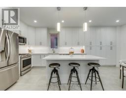 Welcome to 4645 Ethel Rd Where Luxury Meets Location. This fully renovated family home in Alton Village offers over 4,200 sq ft of finished living space (2,966 sq ft above grade + approx. 1,300 sq ft below grade), blending elegance with modern finishes and colours. Situated on a beautifully landscaped lot with mature trees and premium stonework, this 4+1 bedroom home has been completely transformed with top-of-the-line finishes and custom details throughout. Step inside to soaring 9-foot smooth ceilings, rich hardwood flooring, and a welcoming stone-accented foyer. The designer kitchen is a culinary dream, featuring custom floor-to-ceiling cabinetry, polished quartz counters and backsplash, a massive island with soft-close drawers, built-in spice racks, under-cabinet LED lighting, and premium fixtures. The open-concept layout flows seamlessly into a spacious dining area with coffered ceilings and a cozy living room centered around a cast gas fireplace and custom-built entertainment niche with smoked glass shelving. Upstairs, you'll find four generously sized bedrooms with new carpets, upgraded closet systems, and pot lights throughout. The primary suite offers two walk-in closets with custom organizers and a spa-like ensuite with a freestanding tub, rain shower, double vanity, and ceiling-height glass enclosure. The fully finished basement adds remarkable versatility with a soundproofed den or studio, soundproofed 5th bedroom with a large walk-in closet, full bathroom, laundry, a kitchenette with wet bar and bar fridge, and engineered hardwood floors over Dricore subfloor with air gap moisture protection ideal for extended family, a home business, or entertaining. This is a rare opportunity to own a turnkey home in one of Burlington's most desirable neighbourhoods. Nothing left to do but move in and enjoy. (id:47351)