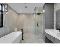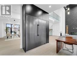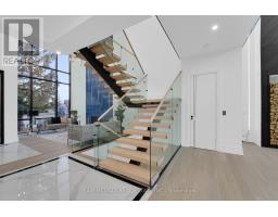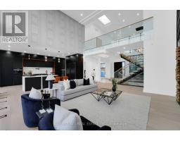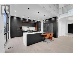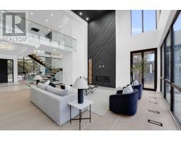 Discover the epitome of upscale living in this contemporary masterpiece nestled in the heart of West Oakville. Offering an exquisitely finished space, this custom home features 5 spacious bedrooms, 6 luxurious bathrooms, and thoughtful details throughout including a dedicated pet spa. Designed for both luxurious everyday living and unforgettable entertaining, the grand foyer flows seamlessly into a breathtaking open-concept living area. Soaring 23-foot floor-to-ceiling windows fill the space with natural light, framed by premium German hardware systems and high-end aluminum gliding windows. Engineered white oak hardwood floors and ambient pot lighting enhance the homes bright, airy atmosphere. The chef-inspired kitchen is a true showpiece, featuring top-of-the-line Dacor appliances, custom cabinetry, a sleek waterfall island, and generous space for casual meals or elegant dinner parties. Striking feature walls add architectural interest and modern artistry throughout the home. Relax by the Napoleon fireplaces in both the living and family rooms, or host guests comfortably in the main-floor bedroom complete with a private ensuite; ideal for visitors or multi-generational living. A Cambridge hydraulic elevator provides seamless, wheelchair-accessible access to all levels. Upstairs, you'll find three serene bedrooms, each with spa-like ensuite bathrooms and walk-in closets. The beautifully finished lower level features radiant heated floors, an oversized cold room, and a walkout to the backyard, offering even more space to unwind or entertain. Additional highlights include a Control4 automation system, central vacuum, walkout basement, swimming pool, aluminum and glass fencing, and so much more. Every detail of this home reflects exceptional craftsmanship and timeless contemporary elegance. (id:47351)