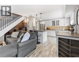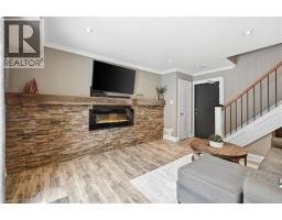 Spacious 2 bedroom townhome located in desirable south Burlington. Perfect for first time home buyers, downsizers or professionals. This home has been recently renovated to maximize living space and comfort. The entrance welcomes you to a bright and inviting main floor with cozy accents. The Living room features a decorative brick accent wall with electric fireplace and beam mantel. The Kitchen includes updated cabinets, quartz counters, stainless steel appliances and plenty of storage. Finished space under the stairs offers potential for home office or reading nook. The Dining area is perfect for family dinners or entertaining. Patio doors provide walk-out access to a private, fenced backyard. The 2nd level features two generous bedrooms filled with natural light, an updated 4-piece bathroom, and a separate laundry/storage room with brand new washer/dryer unit. Low maintenance exterior, condo feed include water, landscaping of common areas, and snow removal. Well run complex, includes building laundry room for owners use. Incredible location close to the lake, Centennial trail, downtown, highways, shopping and public transit. Ready to move in! (id:47351)