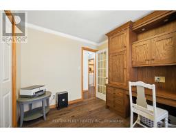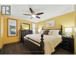 A beautifully maintained Bungalow located on a quiet, mature street in one of Strathroy's most desirable neighbourhoods. This immaculate home offers 3 bedrooms, 2.5 bathrooms, and a convenient attached garage, all set on a landscaped lot with a fully fenced backyard. Hardwood flooring (installed in 2019) flows throughout the bright living room with gas fireplace, the formal dining area, and all three main floor bedrooms, including the spacious primary suite complete with double closets and a 3-piece ensuite bathroom. The updated kitchen (2024) features ceramic tile flooring, a tile backsplash, and stunning quartz countertops. A spacious eating area in the kitchen offers double door access to the covered deck and backyard, perfect for indoor/outdoor living. A 4-piece main bathroom and a main floor laundry room with convenient interior access to the garage complete the main level. The fully finished lower level provides excellent additional living space with a large family room, a dedicated office or sewing room, a 2-piece bathroom, and a large storage area. A generous workshop area on this level offers access up to the garage ideal for hobbyists or additional storage needs. Step outside to enjoy the lovely landscaped backyard, which includes a Greenhouse, Gazebo, raised garden beds, and gas lines in place for both a barbecue and fire pit perfect for entertaining or relaxing. Located in an established neighborhood close to parks, schools, shopping, and amenities, with easy access to Highway 402 for quick commutes to London and surrounding areas. (id:47351)