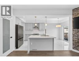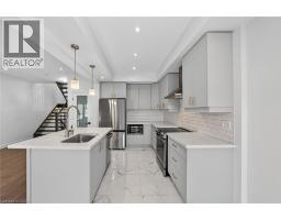Executively crafted luxury townhome in the heart of Hamilton, showcasing nearly $70,000 in premium builder upgrades and finished to the highest standards from top to bottom. This exceptional home features premium vinyl flooring, a sleek standing glass shower, and a stylish electric fireplace anchoring the main living space. The upgraded kitchen impresses with extended cabinetry, an open hood range, and Level 3 quartz countertops, seamlessly paired with a striking modern open-riser staircase. The main floor is thoughtfully equipped with a TV mount and HD TV, Google Nest thermostat, and existing window coverings, offering both comfort and convenience. The walkout basement presents outstanding future rental or in-law suite potential, adding versatility and long-term value. Step outside to a beautifully finished backyard featuring a cozy fire pit, ideal for entertaining or unwinding year-round. Located in a highly desirable neighborhood with an excellent walk score, this home is minutes from major highways, McMaster University, shopping centres, parks, banks, and restaurants, and is surrounded by top-rated schools—making it an ideal place to call home. (id:47351)