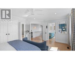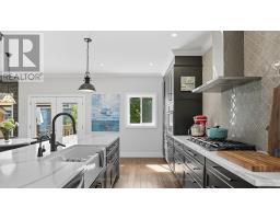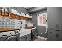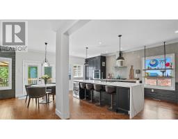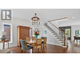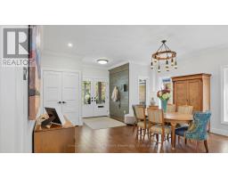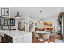 Modern open-concept renovated home in a prime Dundas location, directly across from a park and trails. The main level features hand-scraped hardwood floors, 9-ft ceilings, crown moulding and an abundance of pot lights, a stunning chef inspired kitchen featuring extended cabinetry with pantry and pot drawers, a coffee bar, quartz countertops, a dramatic 10+ ft waterfall island.A sunlit breakfast area walks out to a large deck with an awning, while the family room showcases a gas fireplace with a sleek new surround. A separate dining room, updated powder room and laundry room complete this level.Upstairs, the primary retreat includes a custom walk-in closet and a luxurious ensuite with double vanity, freestanding soaker tub, and glass-enclosed barrier-free shower. Three additional bedrooms, a small study nook, and an updated five-piece main bath complete this level. The finished walkout lower level provides exceptional versatility with a generous recreation room, kitchenette, bedroom, 3-piece bath, and second laundry-ideal for extended family or nanny accommodation.Outdoor living is enhanced by both upper and lower decks, along with a covered hot tub set beneath a gazebo with privacy drapes.Just minutes to downtown Dundas, offering boutique shopping, cafes, renowned restaurants, and a thriving arts scene, with easy access to nearby waterfalls, escarpment trails, and the Dundas Valley Conservation Area for year-round recreation. (id:47351)