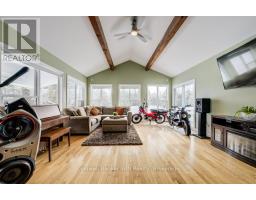 Just 7 minutes from Mount Forest, this 10+ acre country escape offers true peace and quiet - birds greeting the morning, wind in the cedars, and a gentle river along the back of the property. This inviting 1.5-storey home provides space and flexibility for families, entrepreneurs, or anyone craving room to breathe. Featuring five bedrooms and 2.5 bathrooms, including a beautifully finished ensuite ('24), there's space for everyone. The four-season sunroom overlooks the spring-fed pond with fountain; the perfect spot for morning coffee or evening relaxation. The kitchen was refreshed with quartz countertops and a farmhouse sink ('24) and stainless steel appliances ('21). Major updates include roof ('24), North Star windows and exterior insulation ('16), plumbing ('22), ductless heating and cooling in the great room and three bedrooms ('21), and an updated breaker panel with surge protection and GenerLink hookup ('22). A Pacific Energy wood fireplace keeps the home warm and inviting through winter. Outdoors, enjoy a stamped concrete patio, custom grain bin gazebo with hydro, Tannoy outdoor speakers, and a new deck with built-in bench seating. The 14-ft-deep spring-fed pond, winding rear river, and cedar bush trails create a private playground that is ideal for cross-country skiing, exploring, or simply soaking in nature. The 30x60 heated workshop features in-floor heat, 12-ft ceilings, three oversized poly doors, separate hydro panel, and air compressor lines perfect for business or hobby use. A bonus heated bunkie/cottage includes 1 bedroom, 3pc bath, heat pump, propane fireplace, and roughed-in kitchen plumbing. Serviced by a spring-fed well with new pump ('22) and underground tile-drained downspouts, this thoughtfully maintained property offers privacy, functionality, and country charm just minutes from town. This property is ready for the next family to call it home and make memories with friends and family. Make the trip to Mount Forest, you won't regret it. (id:47351)