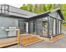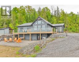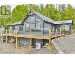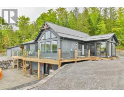 Escape to your own private retreat! Whether you're seeking peace and quiet with a waterfront view or the perfect place to host unforgettable gatherings filled with ATV and snowmobile adventures, this exceptional turn-key, off-grid property truly offers the best of both worlds. Set on 50 acres in a stunning natural landscape, and located near the Heritage Trail between Madoc and Bancroft, this property is accessed via a seasonal road and a long private driveway that leads to a breathtaking setting overlooking your own private lake, stocked with rainbow trout. The six year-old home features a thoughtfully designed main level with three bedrooms, two bathrooms, and a bright open-concept kitchen and living area. Large windows frame picturesque lake views and provide direct access to a full-length deck with sleek glass railings, as well as a charming three-season sunroom-perfect for relaxing or entertaining. The fully usable lower level includes a bar, a partially finished recreation area, and a walkout to an expansive interlocking stone patio. Here, you'll find a firepit and a wood-fired hot tub right at the water's edge, ideal for unwinding under the stars. Designed for self-sufficiency, the home is powered by an 11 kW diesel generator and features two propane fireplaces along with a heat pump providing both heating and air conditioning. A detached 24' x 20' garage with a wood stove, plus a 12-foot lean-to, offers ample storage for all your recreational equipment. Outdoor enthusiasts will love the endless opportunities for adventure, with abundant wildlife-including deer and moose-right at your doorstep, and numerous nearby lakes just a short drive away. Abutting 100's of acres of Conservation land, your privacy is guaranteed. This is a rare opportunity to own a truly special property, don't miss your chance. (id:47351)