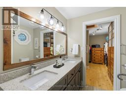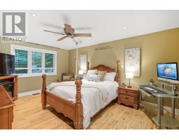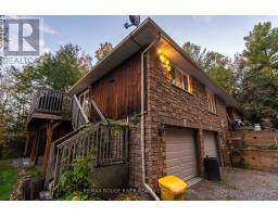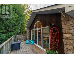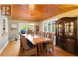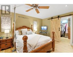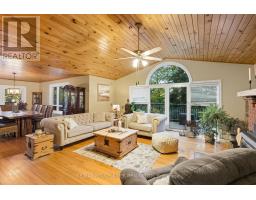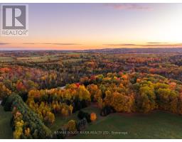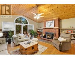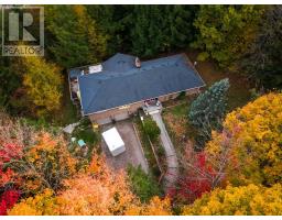 Welcome to your own private 4.69-acre hobby farm retreat! This custom-built bungalow offers an exceptional lifestyle surrounded by mature trees and breathtaking ravine views, an enchanting woodland setting that feels like a true getaway while still close to modern amenities. Step inside through the grand double door entryway to discover an open-concept layout showcasing rich hardwood floors, vaulted pine ceilings, and wall-to-wall windows that flood the home with natural light. The stunning great room features a floor-to-ceiling brick fireplace and a walkout to a large wraparound deck with a hot tub, overlooking total privacy and serene natural beauty. The formal dining room also opens to the deck, creating the perfect flow for indoor-outdoor entertaining. The massive eat-in kitchen is a chef's dream, boasting custom cabinetry, a wall pantry, stainless steel appliances, and pot lights, with a bright breakfast area framed by large windows and scenic views. The primary bedroom offers a semi-ensuite bath, walk-in closet, and warm hardwood flooring, while the second bedroom provides ample space and sunlight. The lower level extends the living space with a bright family room, additional bedrooms, a full bathroom and a walkout to a wraparound patio, ideal for guests or multi-generational living. Equipped with a UV water treatment system, ensuring clean, safe water. Outside, discover a nature lover's paradise, walking trails, a maple syrup sugar shack with 40 maple trees, a fenced dog run, and a massive garden ready for your green thumb. You'll find apple, pear, and cherry trees, strawberries, raspberries, and wine grapes, and perennials that return year after year, attracting local wildlife and offering an ever-changing landscape through the seasons. Whether you're relaxing in the hot tub, making your own maple syrup, or simply soaking in the peaceful sounds of nature, this idyllic hobby farm delivers the perfect blend of comfort, character, and countryside charm! (id:47351)