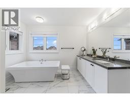 Welcome to this exceptional 4-bedroom, 4.5-bathroom home built by the renowned builder Country Homes, perfectly situated backing onto tranquil green-space for added privacy and beautiful sunfilled backyard views. Designed with both comfort and elegance in mind, this home features 10-foot ceilings on the main floor and thoughtfully upgraded finishes throughout.The stunning kitchen serves as the heart of the home with large centre island with hard surface countertops, stainless steel appliances (gas range) and offering a stylish and functional space ideal for everyday living and entertaining. It flows seamlessly into the spacious dining and family room highlighted by a sophisticated waffled ceiling, creating a warm and inviting atmosphere.Upstairs, the primary bedroom provides a luxurious retreat, complete with large his-and-hers walk-in closets and a beautifully appointed 5 piece ensuite bathroom. Each additional bedroom offers generous space with the front bedroom offering private ensuite and walk-in closet with window. This home is bright and inviting throughout with a ton of natural light and pot lights. Additional features include fantastic stone patio entrance and back patio, over sized basement windows, large baseboards, a rough-in for an electric car charger, central vacuum system, and quality craftsmanship that Country Homes is known for. There is ample parking space for large family with up to six car parking. Backing directly onto peaceful greenspace, this property offers a rare combination of privacy, modern convenience, and timeless design.A truly outstanding opportunity to own a thoughtfully designed home in a desirable setting. (id:47351)