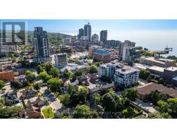 Exquisite Georgian-style end-unit townhouse offered as a turn-key furnished rental investment or luxury personal retreat in the heart of downtown Burlington. Located on a quiet street just one block from Lake Ontario, Spencer Smith Park, the Performing Arts Centre, boutique shops & restaurants, this stylish 2-bedroom, 2-bath home combines historic charm with modern upgrades. Featuring soaring vaulted ceilings, remote skylights, a gas fireplace, rich hardwoods & crown mouldings. Gourmet kitchen w/ granite counters, breakfast bar, pot lights & stainless appliances. Loft-style primary w/ ensuite tub & shower. Flexible guest BR/den. Private courtyard patio w/ BBQ, energy-efficient laundry, plush furnishings & linens - truly all-inclusive. Off-road parking. Quick HWY & GO access to Toronto, Niagara & Pearson. Ideal for long-term executive stays, relocations or worry-free ownership. Exceptional opportunity to own a fully outfitted, income-producing furnished rental in Burlington's vibrant lakeside core. (id:47351)