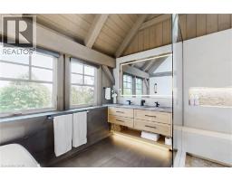 Experience the ultimate combination of productive farmland and country estate living on 91.6 acres at 485 Concession 5 Rd E. With 63 acres of actively farmed/leased land carrying Farm Property Class tax status, enjoy substantially reduced property taxes, approximately 25% of the residential rate on eligible farmland. The current tenant farmer contributes approx. $12,000/year in lease income, offsetting costs while preserving the fertile, organically farmed fields. This versatile property features rolling farmland, mature woodlands, 800+ evergreen trees, and a serene spring-fed pond. A 30’x90’ Quonset hut provides ample storage for equipment or farming operations. The estate includes a fully renovated 2.5-storey, 6-bed, 6-bath main residence with an attached 2-bed, 2-bath guest house, updated with $2M+ in premium finishes (2022/23). Indoor-outdoor living is effortless with a wrap-around veranda and glass-railed deck overlooking the land. Rarely does a farm offer this combination of income potential, reduced taxes, and luxury living, just 4 minutes from downtown Waterdown, a truly unique and versatile property. (id:47351)