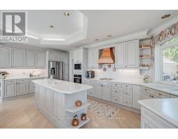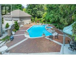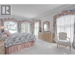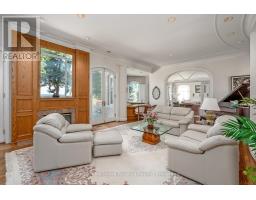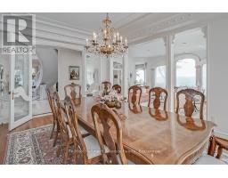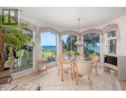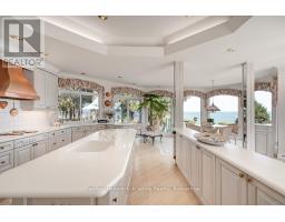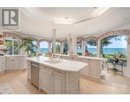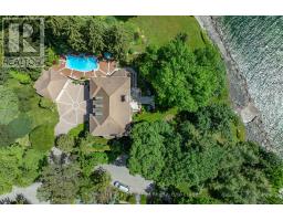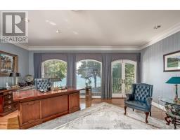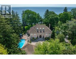 Welcome to an exceptional waterfront residence on one of South East Oakville's most private and prestigious streets. Set on a quiet cul-de-sac with full riparian rights, this landmark estate offers nearly 9,300 square feet of finished living space and stunning lake views from almost every room. A long, gated drive leads to manicured grounds, mature trees and a sun-filled backyard with pool, multiple terraces and direct access to the lake. Designed for both everyday living and elegant entertaining, the main level features a grand foyer, formal living and dining rooms, a lake-facing great room with fireplace and a bright kitchen and breakfast area that open to the terrace. The upper level is highlighted by a private primary suite with balcony, sitting area, walk-in closet and spa-like ensuite overlooking the water. Three additional bedrooms on this level offer ensuite or semi-ensuite access and either lake or garden views. A main floor bedroom provides ideal guest or in-law accommodation. The fully finished lower level includes a spacious recreation room, games area, wine cellar, sauna, full bathroom and a walk-out to the backyard and pool. A lower-level guest suite with ensuite offers additional privacy for extended family or visitors. This rare property combines lakefront living with proximity to the best of Oakville. Walking distance to top-rated public and private schools, close to downtown shops, restaurants, marinas, parks and highways. A unique opportunity to own on the water in Eastlake-where privacy, scale and views come together in one of Oakville's finest settings. (id:47351)