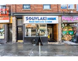 Well-established and profitable Greek quick-service restaurant located in a high-traffic, high visibility area on Bloor Street West. Souvlaki Place has been operating successfully for years with a strong local following, steady walk-in traffic, and consistent sales. The business generates approximately $600,000 in annual gross revenue, with excellent potential for further growth through extended hours, delivery platforms, or catering. Fully equipped kitchen with commercial grade equipment, efficient layout, and turnkey operation ideal for owner operators or investors. The space features durable commercial-grade flooring throughout, designed for high-traffic food service use, providing easy maintenance and long-term durability. Clean, functional dining and prep areas support smooth daily operations. Prime location surrounded by residential buildings, offices, transit, and major amenities, ensuring constant foot traffic. Favorable lease terms and an established brand make this an excellent opportunity to step into a proven business with immediate cash flow. Do not miss this opportunity to own a successful restaurant in one of Toronto's most sought-after corridors. (id:47351)