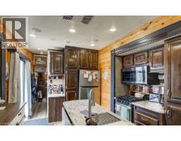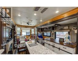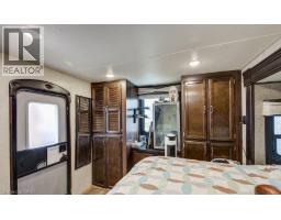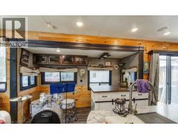 Welcome to Braemar Valley RV Park, a sought-after year-round 50+ adult lifestyle community offering peaceful living with a strong sense of community. This well maintained 2018 Jayco Bungalow 40 Loft model sits on a rare double lot with beautiful landscaping and a concrete driveway with parking for up to 3 vehicles. Enjoy outdoor living on the newer deck, perfect for relaxing or entertaining. Inside, the open concept kitchen and living area features vinyl flooring throughout, a built-in TV and sound system, propane stove, fridge, and microwave. The unit is equipped with propane furnaces and an electric fireplace for comfortable year-round living, along with central air for those warmer months. The loft provides additional sleeping space or convenient storage, while the bedroom includes a closet with washer and dryer hookup. A standout feature is the large 9x18 insulated shed complete with workbench, shelving, and electricity, ideal for storage, hobbies, or seasonal items. Residents enjoy access to a community centre featuring a pool, gym, banquet room, and coin laundry facilities. A great opportunity to enjoy low-maintenance living in a welcoming adult community. (id:47351)