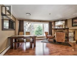 A very spacious 4-level side split featuring a 2-car tandem garage and parking for up to 5 vehicles, nestled in a serene country setting. Offering approximately 2,200 sq. ft. of living space (as per owner), this beautifully renovated home blends comfort, functionality, and tranquility. Enjoy seamless indoor-outdoor living with a walkout to a covered porch, overlooking extensive tiered wood decking—the perfect setting to relax and unwind. The home has been renovated throughout, featuring hardwood flooring, updated bathrooms, and a main-floor family room addition. The spacious, updated kitchen with breakfast bar opens to the family room and the living/dining area, highlighted by a wood-burning fireplace. The upper level offers three generous bedrooms and an updated 5-piece main bath. The entry level includes an updated laundry area with access to the back deck, a fourth bedroom or home office, a 3-piece bath, direct access to the covered back porch, and entry to the 2-car tandem garage. The lower level features a recreation room with wet bar and wood-burning fireplace, a den, and ample storage space. The property is serviced by septic and a drilled well and is ideally located minutes to downtown Dundas, Cambridge, and Hamilton, with Webster’s Falls, parks, and schools just steps away. Minimum 2 year lease. All utilities to be paid by tenant. No smoking or pets. (id:47351)