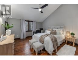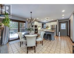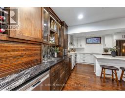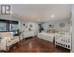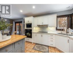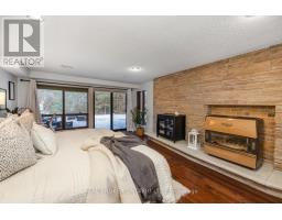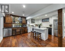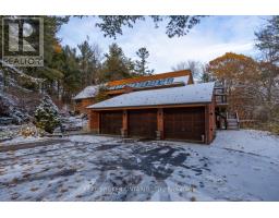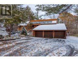 Set amongst mature trees, on approximately 6.17 acres, in an executive Burketon neighbourhood, this stunning raised bungalow offers a rare blend of privacy, character, and craftsmanship. The property welcomes you with a large paved driveway leading to a 3-car attached garage with interior access, plus a detached approx 15ft x 30 ft workshop with hydro - perfect for hobbyists or extra storage. Beautiful landscaping surrounds the home, featuring walkways, fountains, armour stone accents, multiple patio areas ideal for relaxing or entertaining and groomed trails for leisurely strolls through the trees. Enjoy the peaceful sounds of nature from the expansive deck overlooking the private yard. Inside, this home is rich in charm and design detail. The kitchen boasts quartz counters, a moveable centre island, built-in appliances, and a convenient walk-in pantry. The dining room features a walk-out to the deck and shares a striking, two-way wood-burning fireplace with the sunken living room. Here, large windows, a vaulted ceiling, and a floor-to-ceiling stone fireplace creates a warm, inviting atmosphere filled with natural light.The main floor hosts two generous sized bedrooms. The luxurious primary retreat boasts a walk-in closet and a spa-inspired ensuite, features heated floors, a soaker tub, and a tiled walk-in shower. The fully finished, walk-out basement offers exceptional living space with large windows that make it bright and welcoming. It includes two additional bedrooms (one with two closets, and the other with a walk-out to the yard and a woodstove), a 4-piece bath, a dining area and an open concept living space that overlooks the kitchenette. This area has ample cabinetry, quartz counters as well as a custom cherry wood wet-bar. This one-of-a-kind property seamlessly combines elegance, comfort, and natural beauty, truly a place to call home. (id:47351)