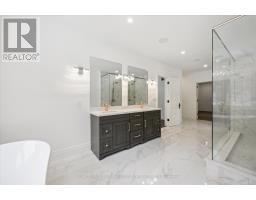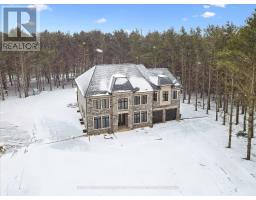 Tucked away in the quiet, tranquil outskirts of Brantford, this exceptional 5,000 sq. ft. new build sits on nearly 3 acres of land. Surrounded by towering evergreens and backing onto Fairchild Creek, 5 West Harris Rd. offers a rare sense of privacy and natural beauty-seamlessly paired with refined luxury living. The home features expansive living spaces with soaring cathedral ceilings, rich engineered hardwood flooring throughout, and modern finishes. Large windows frame breathtaking views of the private, wooded surroundings, creating a seamless connection to nature. Just off the front door, a dedicated home office provides a quiet workspace. A formal living room and separate formal dining room offer elegant spaces for entertaining, while the chef's kitchen, designed for everyday living and gatherings, features high-end appliances, extensive cabinetry, a large centre island, a convenient servery, and an additional dining area opening effortlessly to the family room. Upstairs, four spacious bedrooms each feature their own private ensuite. The primary suite is a true retreat, complete with a generous bedroom, spa-inspired ensuite featuring a freestanding tub, a massive walk-in shower, and an expansive walk-in closet with a skylight that pours natural light into the space. The full basement provides a blank canvas to tailor to your lifestyle-ideal for a home theatre, gym, bar, or games room. Step outside to a pool-sized backyard with a covered outdoor living area, perfect for relaxing or entertaining while immersed in nature. (id:47351)