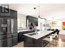 Welcome to "Little Red" - your English Country style home tucked away in the idyllic town of Grand Valley. From the lush perennial gardens and mature trees to the designer-curated finishes, this property is a delightful blend of charm with modern clean lines creating a warm, inviting and sophisticated sanctuary. Solid red brick 3+1 bdrms + 3 full baths, including ground floor Bedroom + Bath - great for main floor living. Bright and airy - open concept living with french doors leading to 12X24 deck, with Natural Gas rough-in for your BBQ. West Facing for evening sunsets. Additional wooden garden shed off the deck. The second floor is complete with Reading Nook flooded with natural light from venting skylight, 2 additional bedrooms + bath. The fully finished basement has a walk-out with covered storage under the deck and direct access to the backyard. A large Family room and additional sleeping nook/full bath and laundry room compliment the light-filled lower level. Stepping outside, your fully fenced backyard, natural privacy, terraced decks, and a relaxing hot tub-is perfect for entertaining or unwinding under the stars. A stand alone heated garage, is currently outfitted as a gym. Your Ideas? Art Studio? Garden suite? Or Workshop - endless possibilities! Driveway parking for 4 cars. An hour from Toronto, Oakville, and Collingwood, this hidden gem blends small-town tranquility with refined interior design. Walk to local shops and restaurants, explore nearby trails, enjoy activities along the Grand River, or just relax at your new home!New Furnace 2025New HWT 2026 (id:47351)