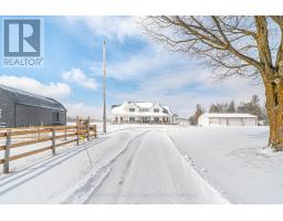 Welcome to an exceptional 98-acre equestrian estate on the outskirts of Omemee, where luxury living meets a fully equipped, turnkey horse facility. Custom built in 2023, this stunning property is meticulously designed for both refined living and professional functionality featuring top-of-the-line construction, 68 workable acres and a private pond. The luxurious home offers over 7,000 sf of living space with 6 bedrooms (4+2), 5 bathrooms, and high-end finishes throughout. The main level features an open-concept layout with a chef-inspired kitchen complete with a centre island, coffee bar, and walk-in pantry. The living room, with a vaulted ceiling is anchored by a fireplace with a walkout to the deck overlooking the property. A private office, 2-piece bath, and laundry room with access to the upper 9m x7m insulated/heated attached garage, an exercise room above the garage, and a wrap-around deck add convenience. The main floor primary suite is a true retreat, offering a spacious walk-in closet with centre island, walkout to the deck, and a luxurious 5-piece ensuite. A dedicated dog spa with built-in wash station adds a thoughtful touch. Upstairs includes 3 generously sized bedrooms, a sitting room, a loft overlooking the living room and a 4-piece bath. The finished walkout basement with in-floor heating features a recreation room with access to a stamped concrete patio, an outdoor kitchen, and an inground pool. A movie/media room, 2 bedrooms, access to the lower 9m x 7m insulated/heated attached garage, 2 additional baths, and a pool change room complete the lower level. Equestrian facilities include an indoor riding arena (21.2m x 50m), a potential upper viewing area from the restored Dutch bank barn with 8 stalls, wash bay, heated tack room, heated laundry/water room, and 3 outdoor paddocks. Additional outbuildings include a Quonset hut (13.5m x 18.5m) and heated storage/workshop (9m x 21m). (id:47351)