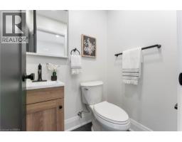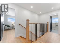 Wake up to quiet mornings & river air in this beautifully custom built new home, perfectly positioned on a large corner lot just steps from the Grand River. Whether it’s morning coffee by the water, evening walks along the trail, or quick trips into downtown Caledonia, this location offers the kind of lifestyle that’s hard to find - peaceful, walkable, and connected. The exterior showcases crisp white vinyl siding complemented by striking black soffits, fascia, eavestroughs, front door, and garage door. Soffit pot lighting adds evening curb appeal, while a rear deck off the sliding doors, fresh sod, and an asphalt driveway are to be completed. Inside, the home feels warm, bright, and thoughtfully designed for everyday living. The welcoming entry offers upgraded ceramic hexagon tile with convenient access to the laundry room and powder room. Light oak hardwood flooring runs throughout the main living spaces and bedrooms, creating a seamless flow. The heart of the home is the open concept kitchen, featuring white shaker style cabinetry with crown moulding & gold hardware, quartz countertops and backsplash, pantry storage, a pot filler over the stove, and stainless steel appliances - perfect for casual breakfasts or hosting friends. An extra wide staircase with iron balusters leads to the second level, where three comfortable bedrooms feature upgraded lighting and ceiling fans. The primary suite provides a peaceful retreat with a walk-in closet and a spa inspired ensuite, complete with a tiled tub surround, linen storage, and a stylish wood slat feature wall. A second full bath with a tiled tub surround and separate linen closet completes the upper level. A beautifully finished new home in a walkable, riverside setting - designed for comfort, style, and everyday life. (id:47351)