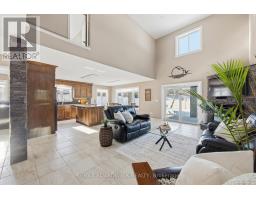 Welcome to this waterfront retreat on sought-after Graham Lake, where custom craftsmanship and luxury come together in perfect harmony. Built in 2018, this stunning full-brick residence with a steel roof has every detail carefully considered, with every finish selected for quality, comfort, and longevity. Step inside to an open-concept main floor highlighted by soaring two-story ceilings, engineered glass railings, and statement lighting that immediately sets the tone. The custom Hunt's kitchen is a showpiece, featuring hickory cabinetry, live-edge granite countertops with a life-proof seal, and premium finishes. The main-floor primary suite is a true sanctuary, offering a spa-inspired ensuite with a custom glass shower and soaker tub. Step directly outside to your hot tub, seamlessly connecting the indoors to your private outdoor area complete with your own personal sauna and relaxation room overlooking the lake, creating the ultimate space to unwind, recharge, and enjoy year-round wellness at home. Upstairs, you'll find three generous bedrooms, a three-piece bath, a bright den overlooking the main living space, and a versatile bonus room ideal for a home theatre, gym, or additional lounge. The home features radiant in-floor heating with individual room controls, an ICF foundation, premium insulation, on-demand hot water/boiler, a high-end water treatment system, and a fully automatic Generac generator. The heated garage offers hot & cold water, floor drains, and an automatic opener. Outdoors, enjoy pristine shoreline, a 24x10ft dock w/ swim platform & additional Seadoo dock. Thoughtfully designed exterior features include armor stone retaining wall and landscaping, a fire-pit area, power outlets for seasonal lighting, and expansive grounds perfect for entertaining or peaceful evenings by the water. This is more than a home-it's a lifestyle. A rare opportunity to own a waterfront property built to last, offering comfort, privacy, and unforgettable lakefront living. (id:47351)