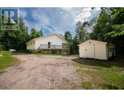 Enjoy peace and quiet from this spacious 3+2 bedroom, 2 bathroom 1,500 sf Wasi Lake waterfront bungalow with full walkout basement. Situated on a beautiful well treed and private nearly 5 acre lot with sandy shore and western exposure for afternoon sun by the lake. The main floor features a large open concept living area overlooking the forest and water, large kitchen, dining/living area with access to the oversized covered lakeside deck with glass rail. 3 bedrooms & 4pc bath with laundry. The lower level has a large rec-room with walkout, as well as room for a seating area next to the wood stove. 2 large bedrooms, utility room and 4pc bath. Forced air propane heating with a/c. The exterior features a large storage shed, ample parking and surrounded by mature maple trees. The shoreline offers over 200 ft of frontage and is firm with a beautiful sandy beach area and firepit. Located only minutes from the 18 hole golf course, ATV, snowmobile trails, area crown land and less than 30 min to North Bay! Adjacent 4.8 acre waterfront available to purchase with home. (id:47351)