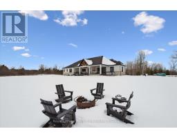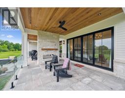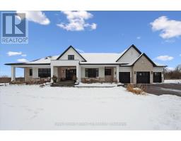 Custom-Built Luxury Bungalow on 2.4 Private Acres with Escarpment Views. Welcome to this one-of-a-kind custom-built bungalow offering 3,400 sq. ft. of refined main floor living space, perfectly nestled on 2.4 acres of serene countryside. With panoramic views of the escarpment and set well back from the road, this residence offers exceptional privacy while being just 20 minutes from the 401. Designed with luxury and functionality in mind, the home boasts soaring ceilings and oversized windows, creating an expansive, airy ambiance throughout allowing the natural landscape in and flooding the home with light. The main level features a seamless open-concept layout anchored by a great room and primary bedroom with oversized sliding doors opening to an extended outdoor living space with a two sided fire place, hot tub, and an abundance of entertaining space. The heart of the home is a chefs dream kitchen outfitted with top-tier Wolf, SubZero, and Cove appliances, complemented by a stylish servery just off the formal dining room. Retreat to the spacious primary suite, a true sanctuary offering an oversized spa-inspired ensuite complete with heated floors, a large walk-in shower, water closet, luxurious soaker tub, dual sinks with an extended vanity, and a generously sized walk-in closet. Two additional bedrooms on the main floor each enjoy their own private ensuites. Downstairs, the wow factor continues. The 10-foot ceilings and expansive windows make the finished basement feel anything but below grade. Designed for versatility, the lower level includes a full gym, sauna, and a private entry from the oversized 3-car garage making it perfect for an in-law suite. This separate living space features a bedroom, full bath, and kitchenette with a fridge, sink, and microwave. Every detail has been thoughtfully considered. Truly, this is a rare opportunity to own a stunning estate home where luxury, privacy, and convenience converge. (id:47351)