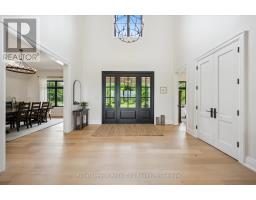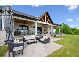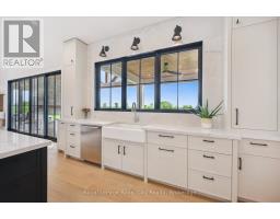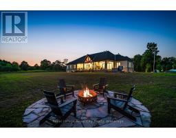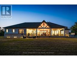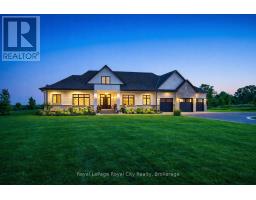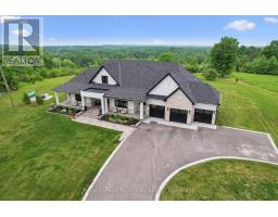 Custom-Built Luxury Bungalow on 2.4 Private Acres with Escarpment Views. Welcome to this one-of-a-kind custom-built bungalow offering 3,400 sq. ft. of refined main floor living space, perfectly nestled on 2.4 acres of serene countryside. With panoramic views of the escarpment and set well back from the road, this residence offers exceptional privacy while being just 20 minutes from the 401. Designed with luxury and functionality in mind, the home boasts soaring ceilings and oversized windows, creating an expansive, airy ambiance throughout allowing the natural landscape in and flooding the home with light. The main level features a seamless open-concept layout anchored by a great room and primary bedroom with oversized sliding doors opening to an extended outdoor living space with a two sided fire place, hot tub, and an abundance of entertaining space. The heart of the home is a chefs dream kitchen outfitted with top-tier Wolf, SubZero, and Cove appliances, complemented by a stylish servery just off the formal dining room. Retreat to the spacious primary suite, a true sanctuary offering an oversized spa-inspired ensuite complete with heated floors, a large walk-in shower, water closet, luxurious soaker tub, dual sinks with an extended vanity, and a generously sized walk-in closet. Two additional bedrooms on the main floor each enjoy their own private ensuites. Downstairs, the wow factor continues. The 10-foot ceilings and expansive windows make the finished basement feel anything but below grade. Designed for versatility, the lower level includes a full gym, sauna, and a private entry from the oversized 3-car garage making it perfect for an in-law suite. This separate living space features a bedroom, full bath, and kitchenette with a fridge, sink, and microwave. Every detail has been thoughtfully considered. Truly, this is a rare opportunity to own a stunning estate home where luxury, privacy, and convenience converge. (id:47351)