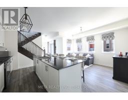 Welcome to this rarely offered premium-sized 1,794 sq. ft. stacked condo townhome in Pickering's sought-after Seaton community, built by Mattamy. This corner unit offers a functional 3-bedroom plus builder-plan home office and 3 bathrooms, thoughtfully upgraded for modern comfort, generous living space, and exceptional commuter convenience. Main floor features an inviting open-concept design with 9ft ceilings that create a bright, airy atmosphere. The upgraded kitchen stands out with its large island, stainless steel appliances, contemporary cabinetry, and ample storage-ideal for daily living and entertaining. This space flows into the dining and living areas and opens to a private balcony. Main floor features an office, offering privacy for remote work or study. A rare main-floor bedroom with a walk-in closet provides valuable flexibility for guests or multi-generational living. The upper level includes two spacious bedrooms, each with a private ensuite and walk-in closet. The primary suite offers dual walk-in closets. A dedicated laundry room with a sink and storage enhances functionality, and a second private balcony completes the floor. The property is minutes from Highways 401, 407, 412, and the Pickering GO Station, ensuring seamless connectivity across the GTA. With highly rated public schools nearby, this neighbourhood offers an ideal environment for your children to learn and grow. Grocery stores, parks, and scenic trails are all close by, with the Seaton community continuing its strong growth. Additional upgrades include smart lighting controls, an Ecobee smart thermostat, premium main-floor lighting, and efficient under-stair storage. Parking features an EV-ready garage plus a private driveway. Condo fees cover snow removal for pathways and roads. This turnkey home blends contemporary design, functional enhancements, and an unbeatable location-offering an excellent opportunity in one of Pickering's most desirable communities. (id:47351)
