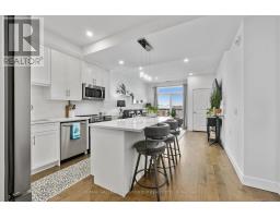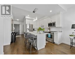 Low-maintenance living at its finest, this one-bedroom plus den condo is ideally located just steps from Lake Ontario and downtown amenities and perfectly positioned on the penthouse floor of Harbour Breeze Condominiums, offering an elevated sense of privacy and light. The open front entry offers storage and sets the tone for the thoughtfully designed interior. The open-concept principal living space features high ceilings and a contemporary aesthetic. The living room is highlighted by recessed lighting and a walkout to a private balcony, creating a bright and inviting atmosphere. The kitchen showcases a clean, modern design with matching stainless steel appliances, generous counter and cabinet space, and a central island with a breakfast bar and pendant lighting, perfect for both everyday living and entertaining. The primary suite offers a well-appointed layout complete with a walk-in closet and a private ensuite featuring a double vanity and glass shower enclosure. A versatile den provides space for a home office or guest bedroom, complemented by an additional full bathroom and convenient in-suite laundry. Enjoy outdoor living on the spacious balcony, all while being just moments from downtown conveniences and offering easy access to the 401. (id:47351)