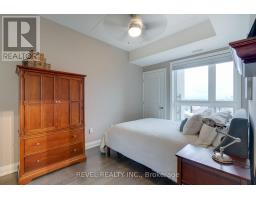 $407.83 MonthlyWelcome to this stunning two-bedroom condo perched on the top floor where the breathtaking sunsets and escarpment views will be your calm at the end of a busy day. Step inside to this thoughtfully designed unit featuring modern laminate flooring and a stylish kitchen highlighted by quartz countertops, a breakfast bar and traditional potlights complemented by a bright living area and walkout to a large private balcony. Both bedrooms are generously sized and offer flexibility for guests or a convenient home office. Enhanced by low maintenance fees, you will enjoy access to premium amenities including a well-equipped fitness room and an impressive rooftop deck ideal for hosting friends on a summer evening or unwinding against the night sky. Surrounded by scenic walking trails and just moments from local conveniences (schools, shops and dining), this condo offers the perfect balance between tranquility and urban accessibility - a truly exceptional place to call home. (id:47351)