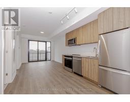 Welcome to this 605+ Sq.Ft. sun filled, brand new, never-lived-in 1-bedroom plus perfectly sized Den condo unit, offering an upscale lifestyle in Milton with unobstructed views of Escarpment from the side balcony. The suite comes with an impressive floor plan with soaring 9-foot ceilings and is fully upgraded with sleek laminate flooring. The open-concept living and dining area flows seamlessly into a functional Den, which serves perfectly as a home office, study room, and even the second Bedroom. A gourmet kitchen featuring elegant granite countertops, an attractive backsplash, European-style cabinetry with valance lighting and a set of stainless steel premium appliances. The spacious Primary Bedroom includes a large window, and a large closet. The 4-piece bath and in-suite laundry complete the interior conveniences. Open private balcony perfect for relaxing, enjoying your morning coffee and Sunlight in Summer time. This unit includes one under ground parking space and a locker. The host of amenities including 3-floor amenity space, fitness centre, yoga studio, media room, co-working lounge, concierge, social lounge, rooftop terrace, green space, pet spa, terrace entertainment area, BBQ's, dining & entertainment lounge and more. Be the first to call this modern and sophisticated suite your home. (id:47351)